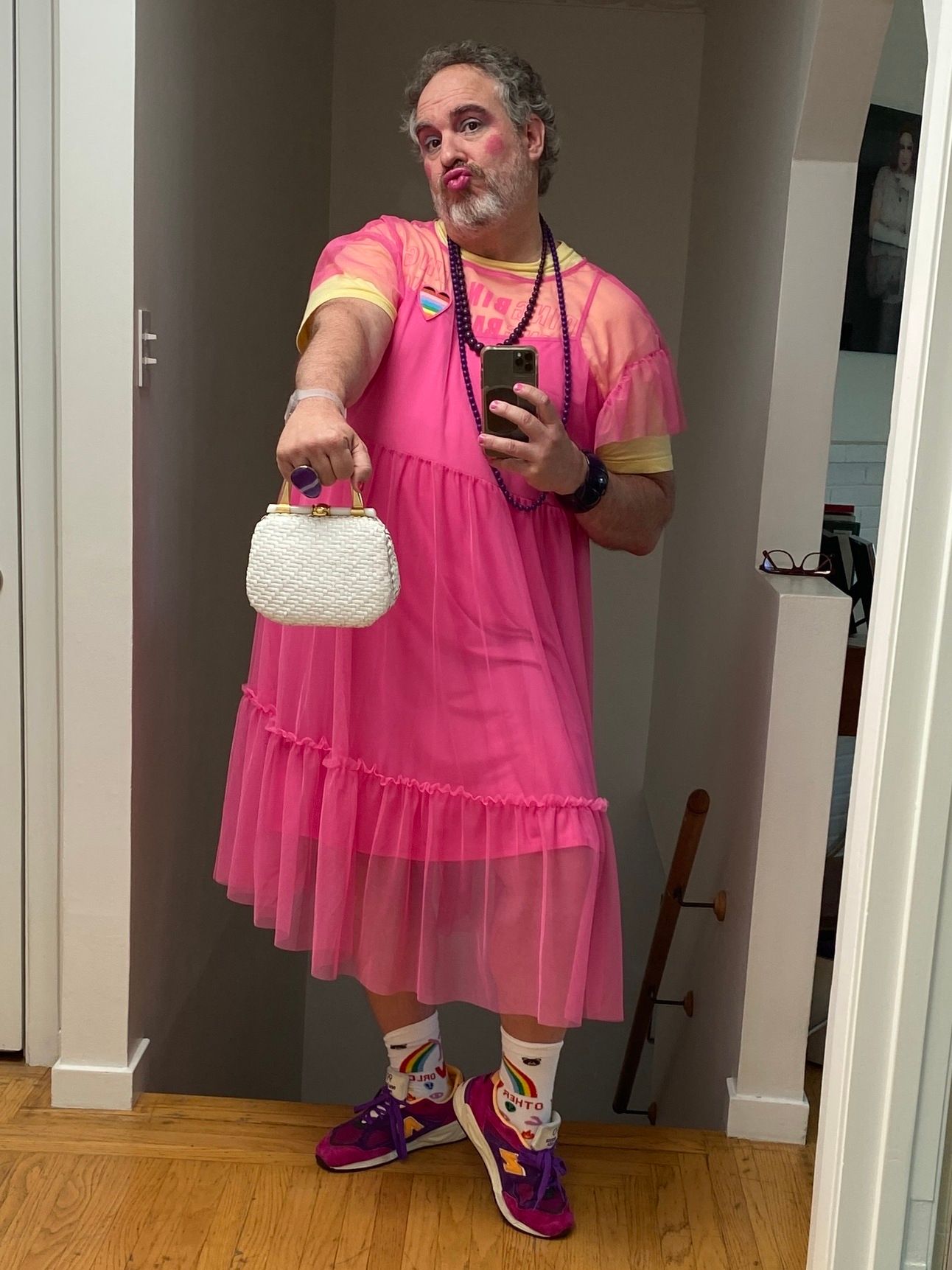 PS - Here’s a picture as I was leaving the house for a Pink Pride Party here in San Francisco. I got the assignment to wear pink and as I was putting on the make-up, felt like taking it to “Twisted Baby Doll”. It was fun to push the make-up and try something different. The pink dress is from Target’s current Pride collection, btw.