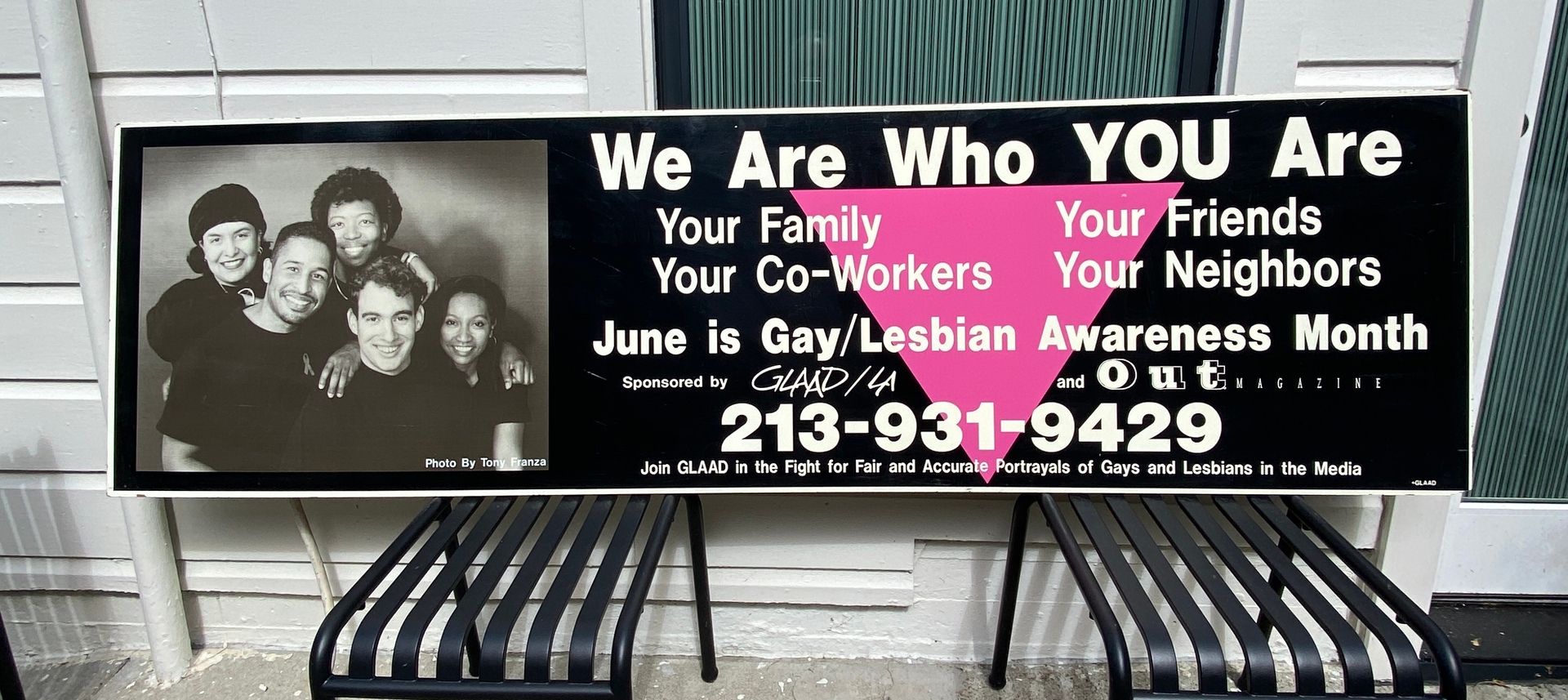 That’s how the Bus Bench Campaign was born. Featuring a group of LGBTQ+ individuals (I put my money where my mouth was and volunteered to represent white gays), we placed the benches in more conservative parts of LA County where people might need the reminder that “We Are Who YOU Are: Your Family, Your Friends, Your Co-Workers, Your Neighbors”.